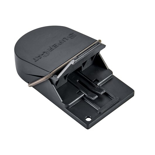1.) Zatlačte páčku dolů a sejměte kryt pasti. Nyní je past SuperCat připravena k použití.