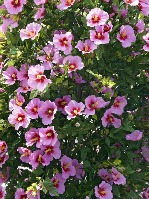Afrodita nese velmi velké květy jasně růžové barvy s menším vínovým okem uprostřed. Vytváří poměrně velká poupata a přírůstky. Velmi atraktivní.
