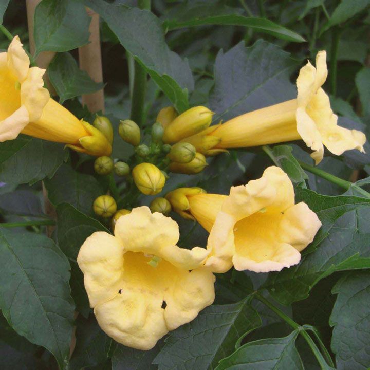 Flava je klasickým představitelem severoamerických trumpetistů. Trubkovité květy vypadají jako 5-6 cm dlouhé otevřené trubky a mají sytě jasně zlatožlutou barvu. Opadavé listy jsou velké, světle zelené. Kvete velmi pozdě - koncem dubna.