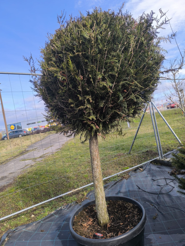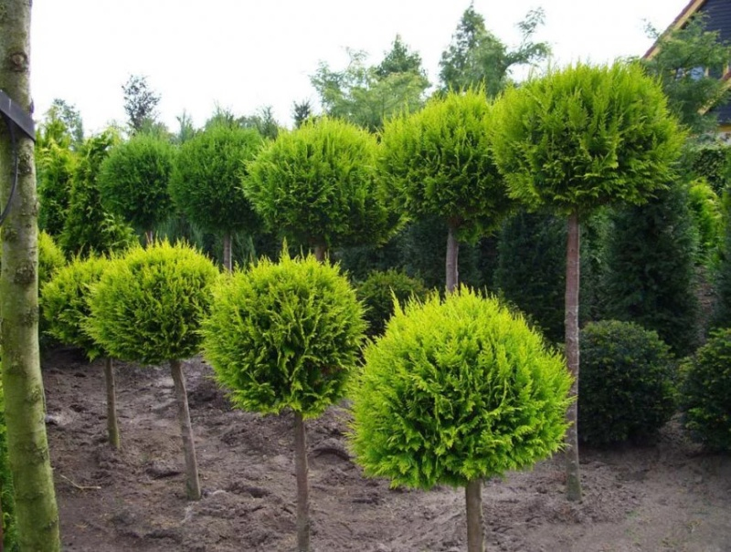 Thuja, tvarovaná do koule, je vhodná jako solitér v květináči u dveří, ale také jako nápadná rostlina ve výsadbě.