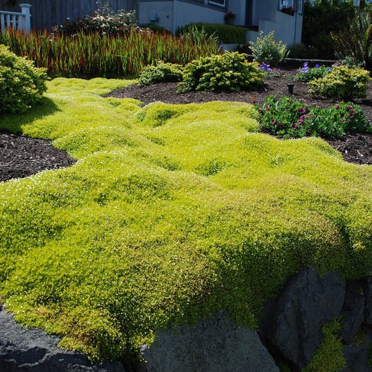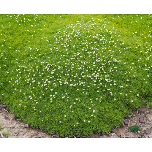 Vzhled připomínající mech. Barva květu bílá. Kobercovitý, drobnolistý, mechu podobný keř.