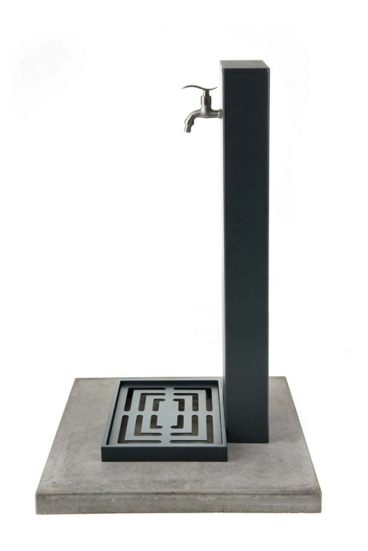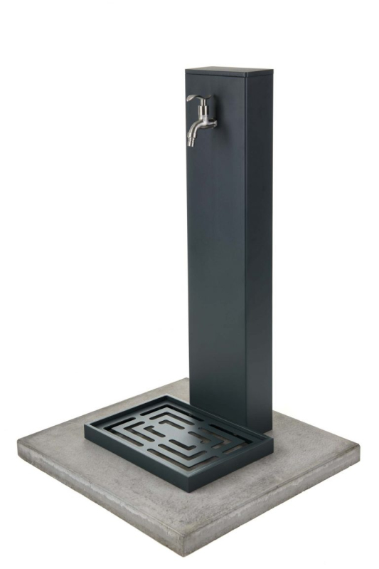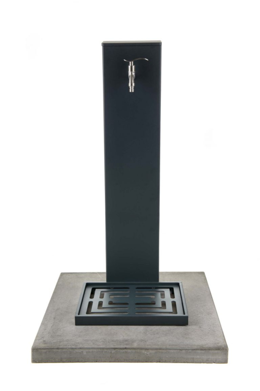 Nejmasivnější vodní sloup v naší nabídce je vyroben z kombinace nerezové oceli a pozinkované černé oceli s vypalovanou antracitovou barvou (RAL 7016).