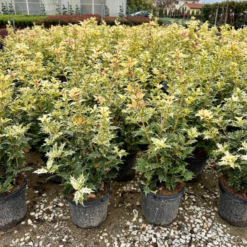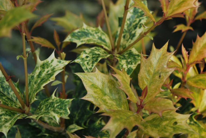 Jedná se o stálezelený okrasný keř, dorůstající výšky 1-2 m. Má žlutozelené listy, v mládí narůžovělé s vykrajovanými pichlavými okraji. daří se mu ve vlhké, humózní, kyselé půdě, na slunci i v polostínu.