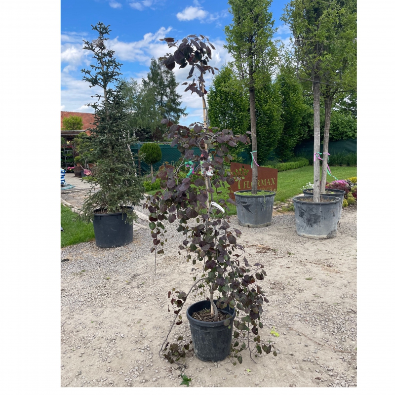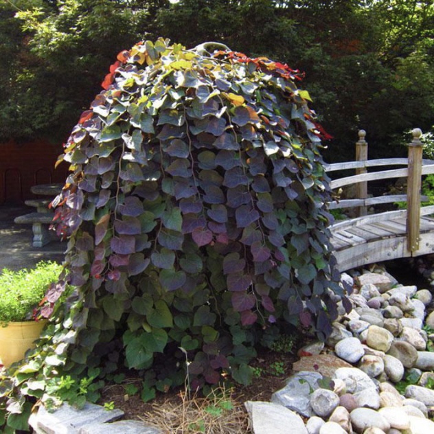 Ruby Falls je převislá odrůda s nádhernými, sytě růžovými jarními květy a později fialovými listy. Zbarvení jejích listů se na podzim mění do živých oranžových, žlutých a červených odstínů. Výška kultivaru se určuje sama odnožováním.