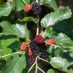 Moruša (Morus nigra) Trnavská patrí medzi obľúbené odrody vďaka svojím veľkým čiernym plodom (3-5cm) s vysokým obsahom sacharidov.